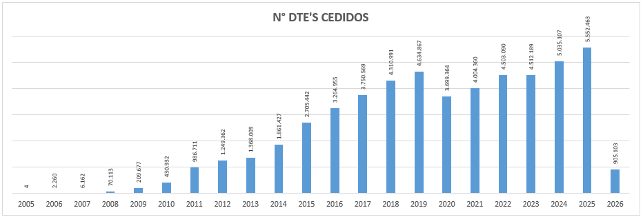 | Año | N° DTE's Cedidos |