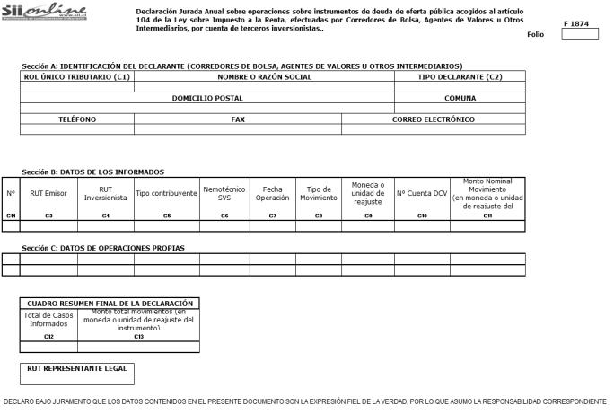 INSTRUCCIONES PARA CONFECCIONAR DECLARACIÓN JURADA. N° 1874
