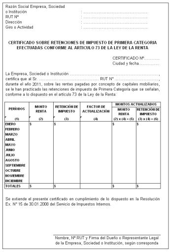 Certificado N° 12, Sobre Retenciones de Impuesto de Primera Categoría Efectuadas Conforme al Artículo