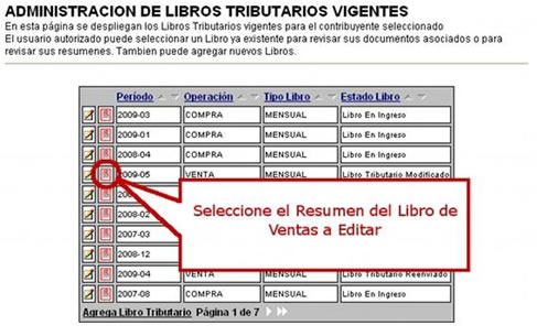 Se listarán los libros de compra y venta electrónicos (IECV); acá deberá seleccionar el resumen del libro de ventas en que desea editar los resúmenes.