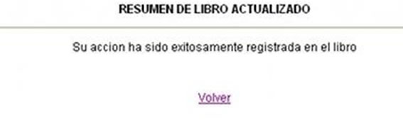 Si el resumen se registra de forma correcta, aparecerá el siguiente mensaje, si desea efectuar otra operación puede presionar el link "Volver".