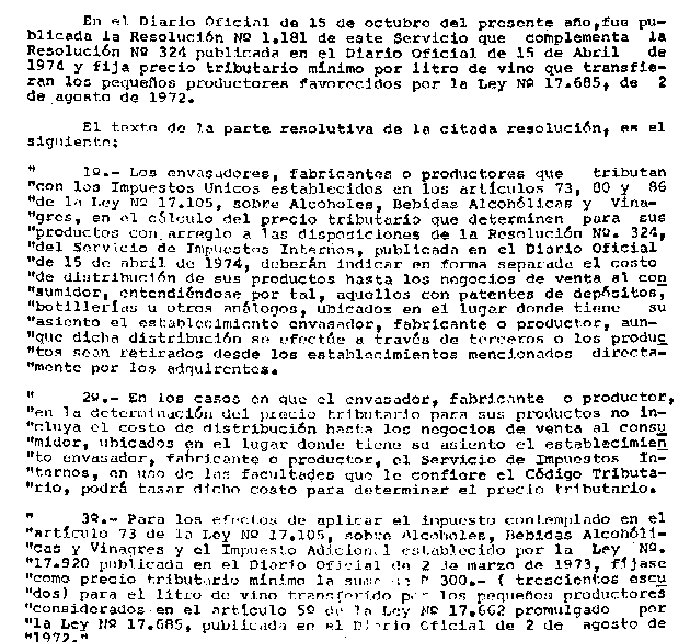MATERIA : IMPTO. ÚNICO LEY DE ALCOHOLES. IMPARTE INSTRUCCIONES SOBRE COSTO DE