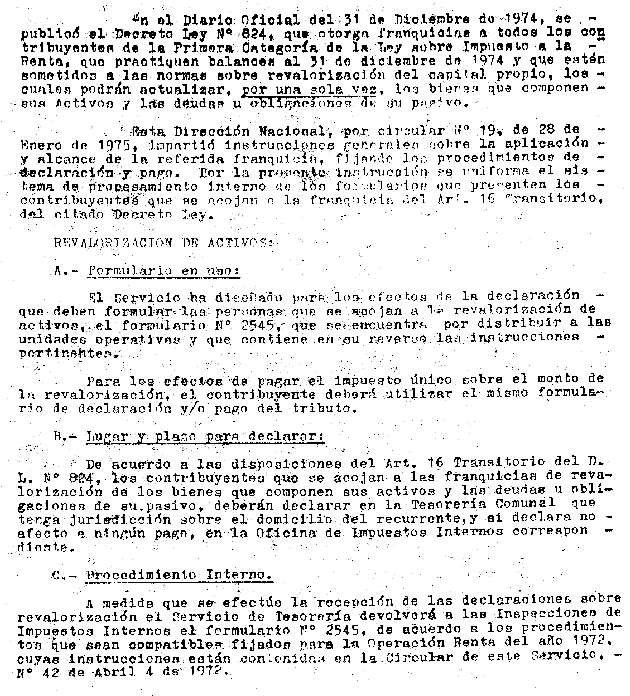 CIRCULAR Nº27 DEL 10 DE FEBRERO DE 1975 MATERIA : REVALORIZACIÓN DE ACTIVOS Y DEUDAS U OBLIGACIONES. PROCESAMIENTO INTERNO DE LAS DECLARACIONES.