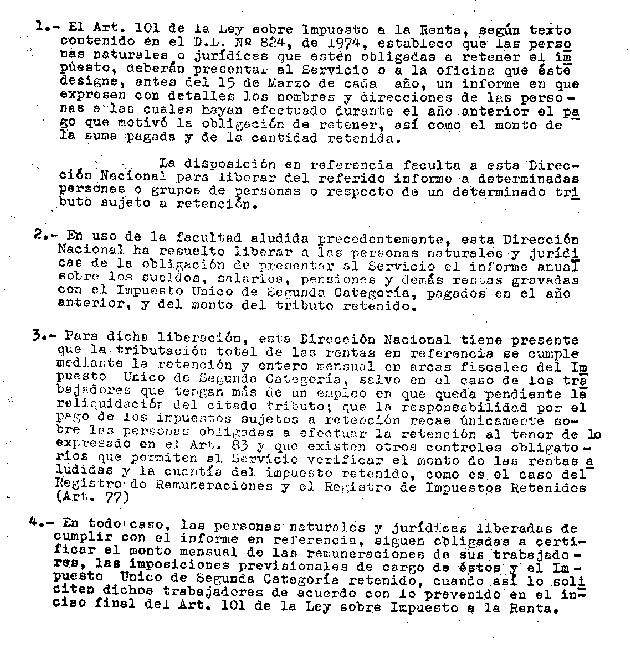 CIRCULAR Nº41 DEL 5 DE ABRIL DE 1976 MATERIA : LIBERA DE LA OBLIGACIÓN DE PRESENTAR AL SERVICIO EL INFORME ANUAL OBLIGATORIO SOBRE RETENCIÓN DEL IMPUESTO ÚNICO DE SEGUNDA CATEGORÍA.