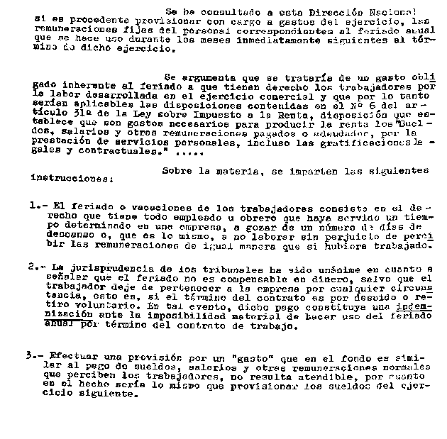 CIRCULAR Nº60 DEL 12 DE MAYO DE 1976 MATERIA : PROVISIÓN PARA FERIADOS. NO SE ACEPTA COMO GASTO LA PROVISIÓN POR FERIADOS QUE DEBAN CUMPLIRSE EN EL EJERCICIO SIGUIENTE.