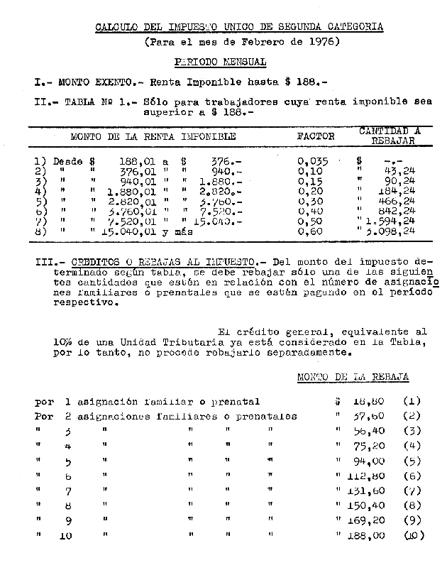 UNIDAD TRIBUTARIA MENSUAL Y TABLAS DE IMPUESTOS PARA EL MES DE FEBRERO DE 1976. ÍNDICE
