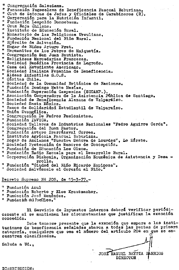 CIRCULAR Nº65 DEL 19 DE MAYO DE 1977 MATERIA : NÓMINA DE INSTITUCIONES DE BENEFICENCIA EXENTAS DEL IMPUESTO DE PRIMERA CATEGORÍA.