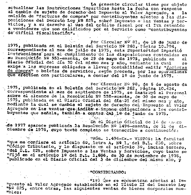 CIRCULAR Nº81 DEL 17 DE AGOSTO DE 1978 MATERIA : IMPARTE INSTRUCCIONES SOBRE RESOLUCIÓN Nº 1.496, EXENTA, REFERENTE AL CAMBIO DE SUJETO DE DERECHO DEL IVA Y A LA EMISIÓN DE FACTURAS DE COMPRA.