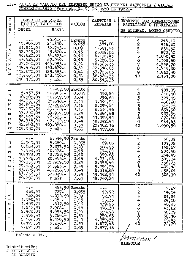 CIRCULAR Nº18 DEL 13 DE ABRIL DE 1982 MATERIA : IMPUESTO ÚNICO DE SEGUNDA CATEGORÍA. MONTO DE LA UNIDAD TRIBUTARIA. TABLAS DE IMPUESTO MES DE MAYO DE 1982.
