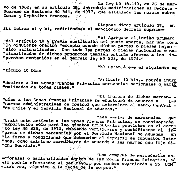 CIRCULAR Nº37 DEL 29 DE JULIO DE 1982 MATERIA : MODIFICACIONES AL D.S. DE HDA. Nº 341, DE 1977, SOBRE NORMAS EN ZONAS Y DEPÓSITOS FRANCOS.