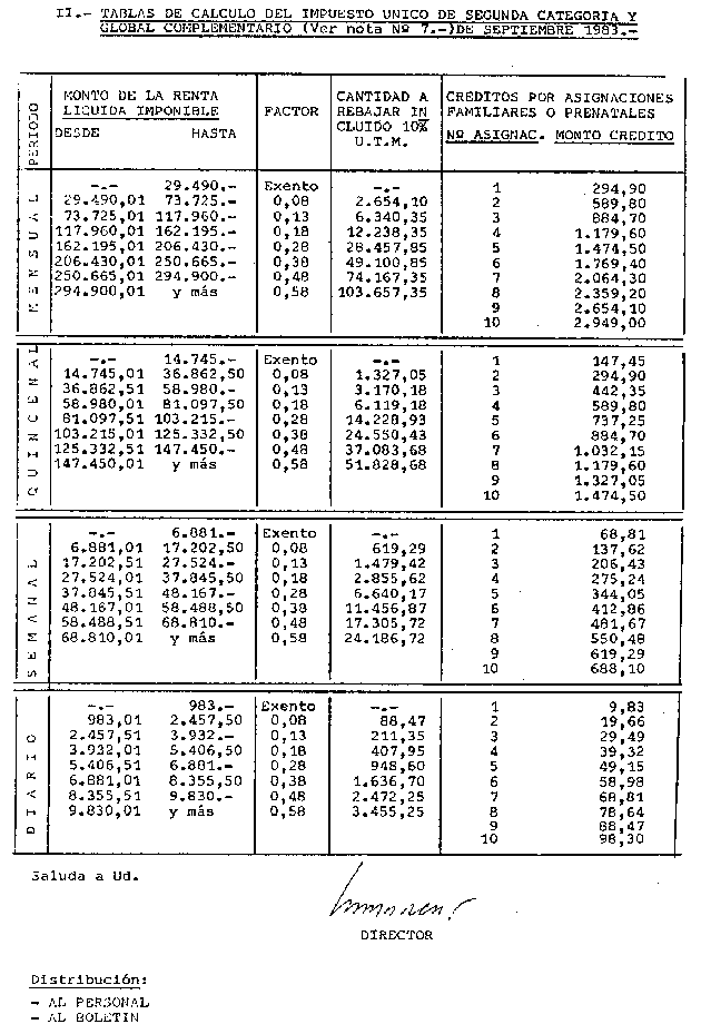 CIRCULAR Nº32 DEL 17 DE AGOSTO DE 1983 MATERIA : IMPUESTO ÚNICO DE SEGUNDA CATEGORÍA. MONTO DE LA UNIDAD TRIBUTARIA. TABLAS DE IMPUESTO PARA EL MES DE SEPTIEMBRE DE 1983.