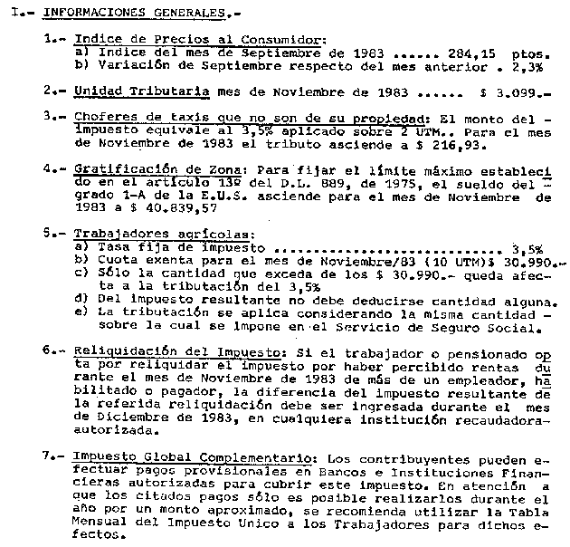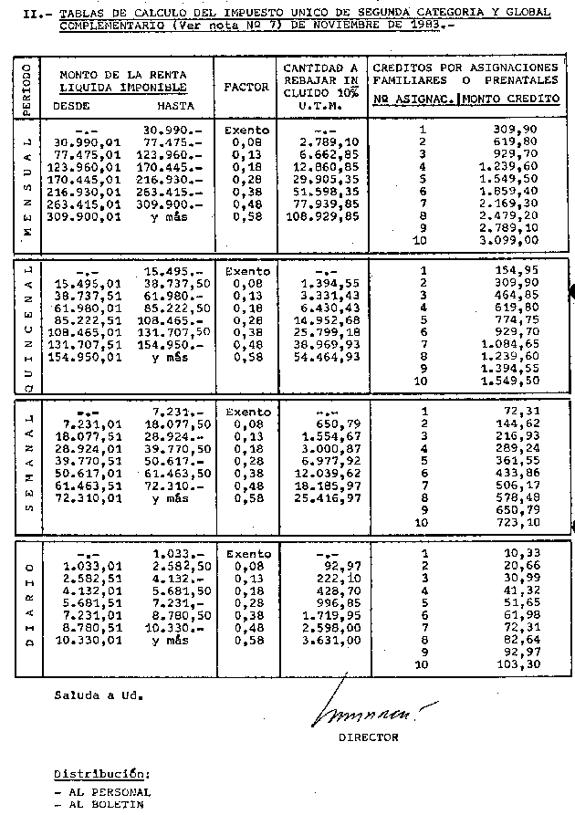CIRCULAR Nº37 DEL 13 DE OCTUBRE DE 1983 MATERIA : IMPUESTO ÚNICO DE SEGUNDA CATEGORÍA. MONTO DE LA UNIDAD TRIBUTARIA. TABLAS DE IMPUESTO PARA EL MES DE NOVIEMBRE DE 1983.