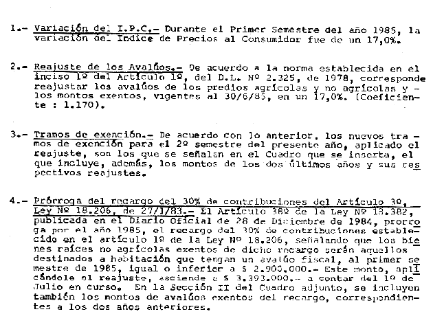 CIRCULAR Nº32 DEL 15 DE JULIO DE 1985 MATERIA : REAJUSTE DE AVALÚOS DE BIENES RAÍCES SEGUNDO SEMESTRE DE 1985.