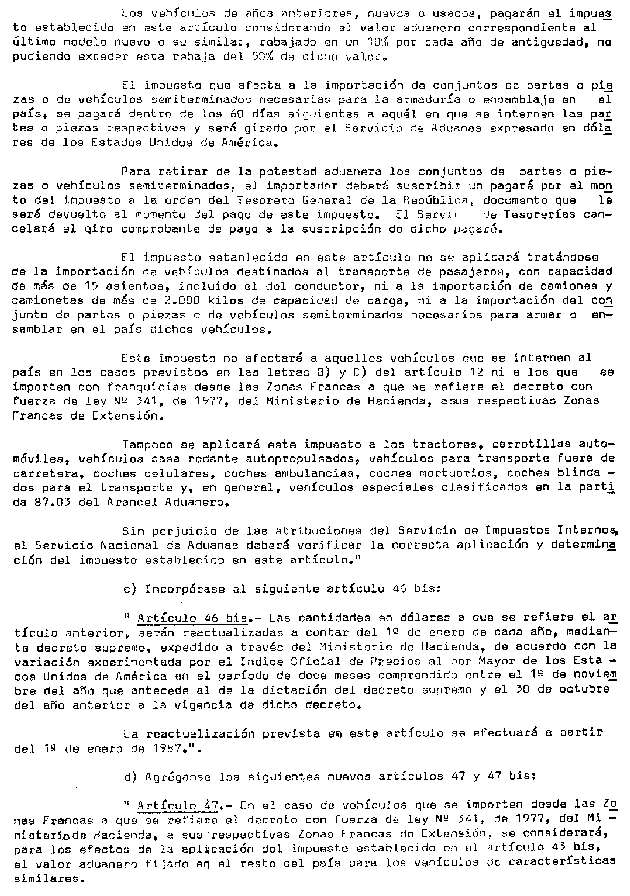 CIRCULAR Nº9 DEL 16 DE ENERO DE 1986 MATERIA : TRIBUTACIÓN ADICIONAL QUE AFECTA A LA IMPORTACIÓN DE VEHÍCULOS Y DE CONJUNTOS DE PARTES O PIEZAS NECESARIAS PARA SU ARMADURÍA O ENSAMBLAJE EN EL PAÍS.