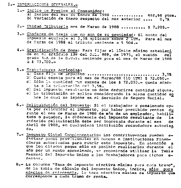 CIRCULAR Nº18 DEL 12 DE FEBRERO DE 1988 MATERIA : IMPUESTO ÚNICO DE SEGUNDA CATEGORÍA. MONTO DE LA UNIDAD TRIBUTARIA. TABLAS DE IMPUESTO PARA EL MES DE MARZO DE 1988.