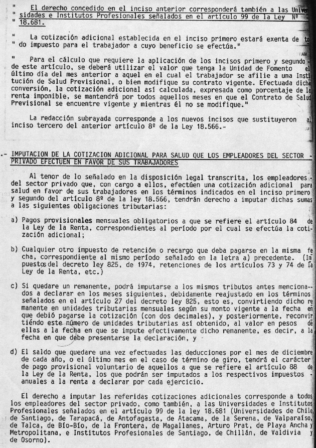 MATERIA: COTIZACION ADICIONAL PARA LA SALUD. NUEVA FORMA DE IMPUTAR LA COTIZACION