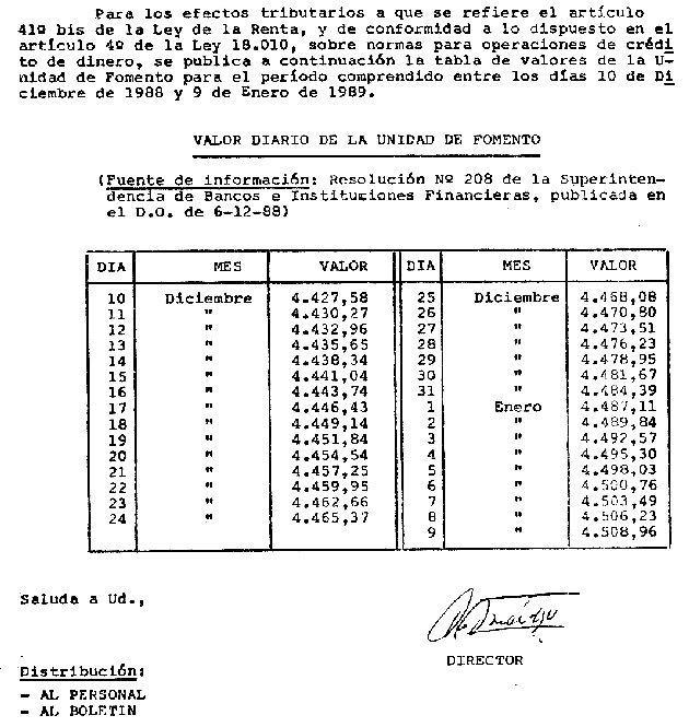 CIRCULAR Nº57 DEL 12 DE DICIEMBRE DE 1988 MATERIA : OPERACIONES DE CRÉDITO DE DINERO. VALOR DE LA UNIDAD DE FOMENTO PARA LOS DÍAS COMPRENDIDOS ENTRE EL 10 DE DICIEMBRE DE 1988 Y EL 9 DE ENERO DE 1989.