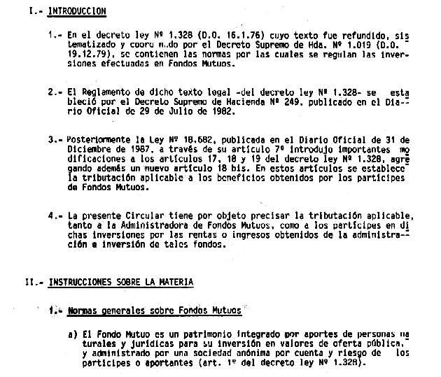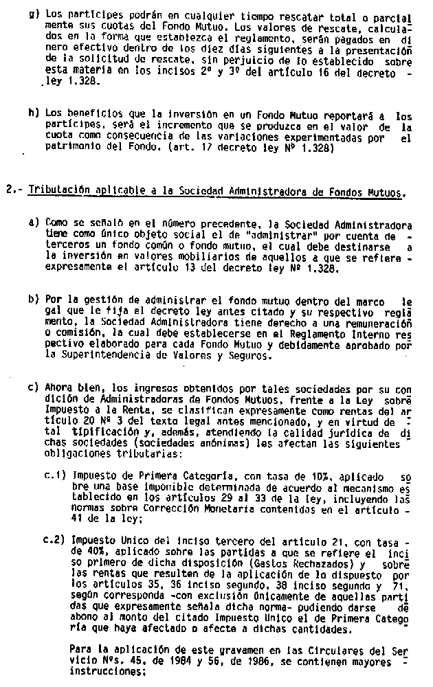 CIRCULAR Nº1 DEL 5 DE ENERO DE 1989 MATERIA : RÉGIMEN TRIBUTARIO APLICABLE A LOS FONDOS MUTUOS.