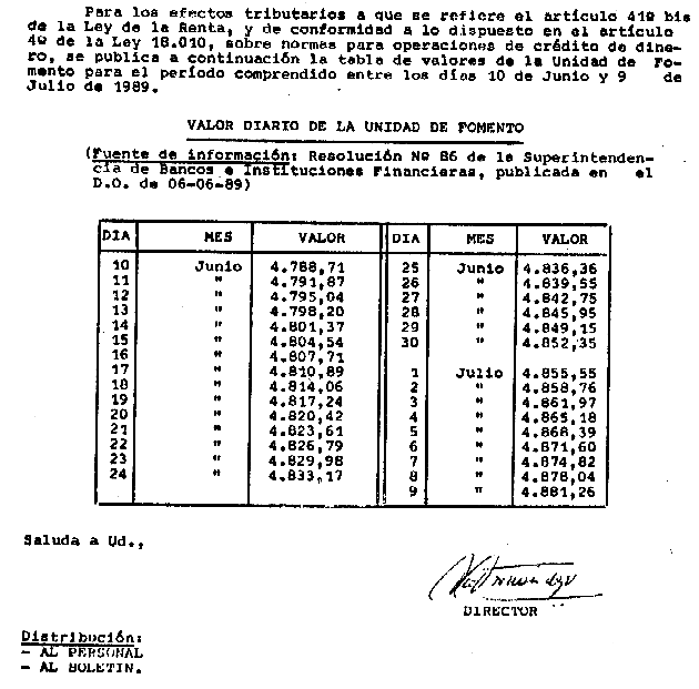 CIRCULAR Nº28 DEL 13 DE JUNIO DE 1989 MATERIA : OPERACIONES DE CRÉDITO DE DINERO. VALOR DE LA UNIDAD DE FOMENTO PARA LOS DÍAS COMPRENDIDOS ENTRE EL 10 DE JUNIO Y EL 9 DE JULIO DE 1989.