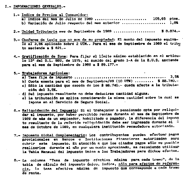 CIRCULAR Nº35 DEL 10 DE AGOSTO DE 1989 MATERIA : IMPUESTO ÚNICO DE SEGUNDA CATEGORÍA. MONTO DE LA UNIDAD TRIBUTARIA. TABLAS DE IMPUESTOS PARA EL MES DE SEPTIEMBRE DE 1989 .