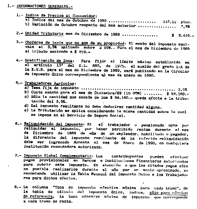 CIRCULAR Nº46 DEL 9 DE NOVIEMBRE DE 1989 MATERIA : IMPUESTO ÚNICO DE SEGUNDA CATEGORÍA. MONTO DE LA UNIDAD TRIBUTARIA. TABLAS DE IMPUESTO PARA EL MES DE DICIEMBRE DE 1989.