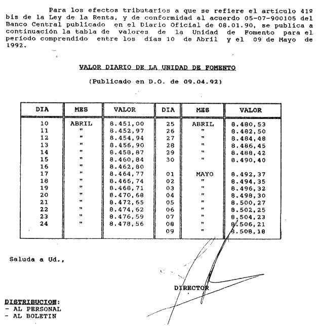 MATERIA: OPERACIONES DE CRÉDITO DE DINERO - VALOR DE LA UNIDAD DE FOMENTO PARA LOS DÍAS COMPRENDIDOS ENTRE EL 10 DE ABRIL Y EL 09 DE MAYO DE 1992