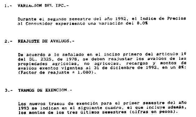 MATERIA: REAJUSTE AVALÚO BIENES RAÍCES PRIMER SEMESTRE DE 1993.