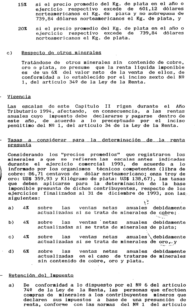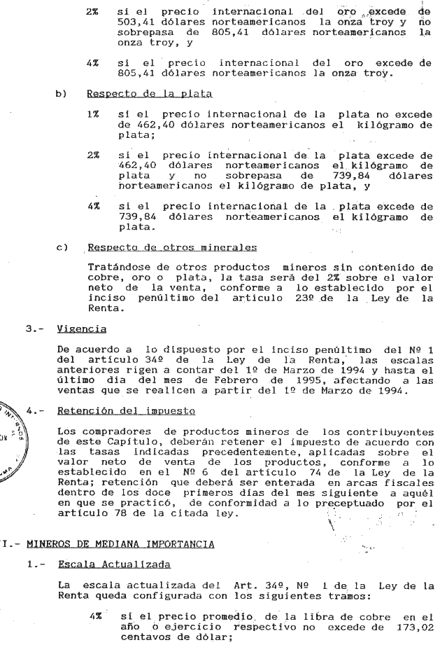 MATERIA: TRIBUTACIÓN DE LOS MINEROS - NUEVAS ESCALAS Y TASAS PARA LA DETERMINACIÓN DE LOS IMPUESTOS QUE AFECTAN A LOS CONTRIBUYENTES MINEROS QUE SE INDICAN.