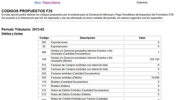 Con los libros enviados,  el sistema puede proponer códigos de la declaración y con ellos realizar su declaración de impuestos; estos se obtienen manualmente (no se traspasan automáticamente a la declaración) desde la opción “Propuesta parcial del F29 (a partir de IECV enviado)” como se ve en la imagen: