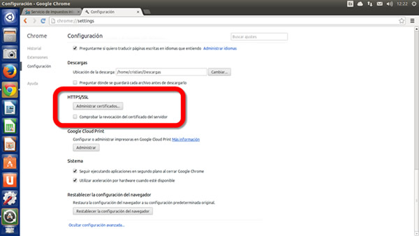 Esta guía fue desarrollada en un PC con sistema operativo Linux Ubuntu release 13.10 y navegador Google Chrome versión 31. Sin embargo, el certificado digital, es posible instalarlo en otros sistemas operativos y navegadores. Previo a esta instalación, el contribuyente o un representante legal, debe haber adquirido un certificado digital a una de las Empresa Proveedora de Certificado Digital que entregará el certificado como archivo o directamente para descargar desde su sitio web.