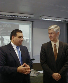 En la fotografía, el Ministro de Hacienda salvadoreño, Juan José Daboub, conversa con el Director de nuestro Servicio.