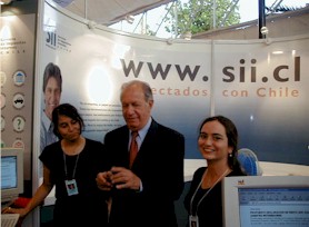 Esta novedad ha despertado particularmente el interés de los visitantes del stand de nuestro Servicio, incluyendo al Presidente de la República, Ricardo Lagos, quien en la tarde de ayer consultó detalles de la forma en que operará esta nueva facilidad para los contribuyentes chilenos durante un recorrido por la exposición levantada en la estación Mapocho.