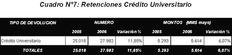 universitario, la suma $5.613.828.105, lo que representa un aumentó del 6,07% con respecto al año 2005.