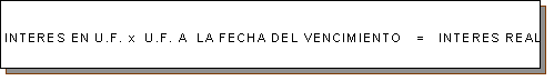 Total percibido al 17.08.2001............................................................................U.F. 161 Menos: Capital original depositado el 28.09.2000...............................................U.F. 150 Monto Interés en UF........................................................................................U.F. 11 Conversión de intereses en U.F. a pesos La fórmula que corresponde aplicar es la siguiente: