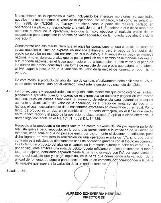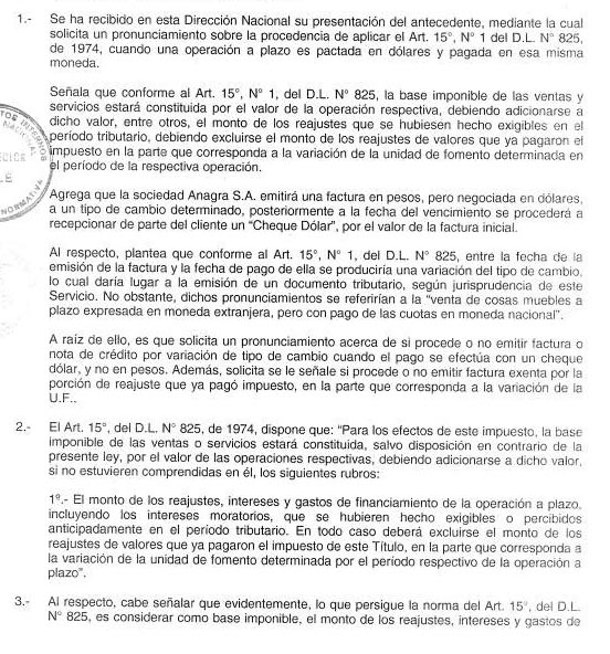 LEY DE IMPUESTO A LAS VENTAS Y SERVICIOS ARTICULO 15 N° 1. OFICIO N° 971, de 16 de Marzo 2006.- MATERIA: Procedencia de aplicar artículo 15 N° 1 del D.L. 825, de 1974, cuando una operación a plazo es pactada en dólares y pagada en esa misma moneda.