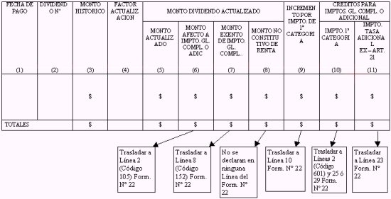 Línea 1 del Formulario Nº 22, de acuerdo con las instrucciones