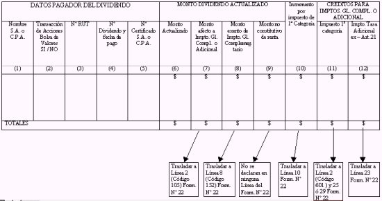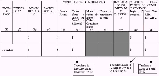 otra del Formulario Nº 22, los dividendos que las citadas sociedades les