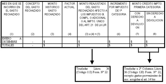 del D.L. Nº 600, para la declaración de los gastos rechazados a que