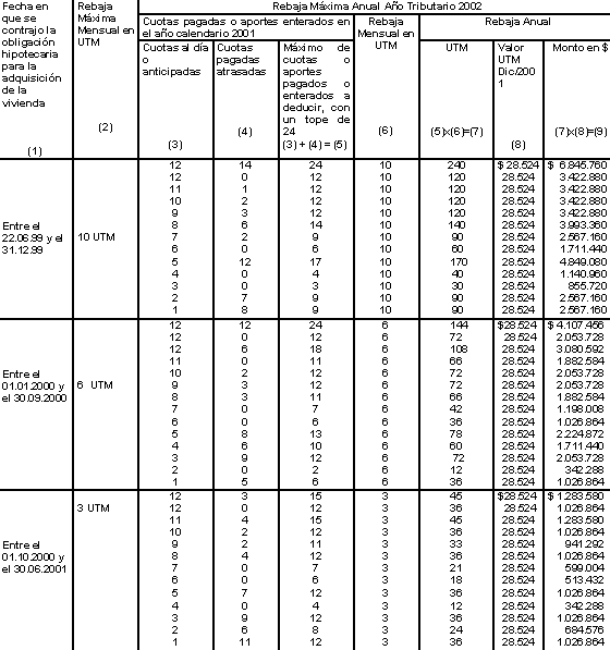 Año Tributario 2002 la referida rebaja asciende a la