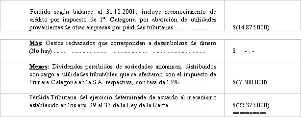 el ejercicio comercial 2001 o por saldos negativos de utilidades