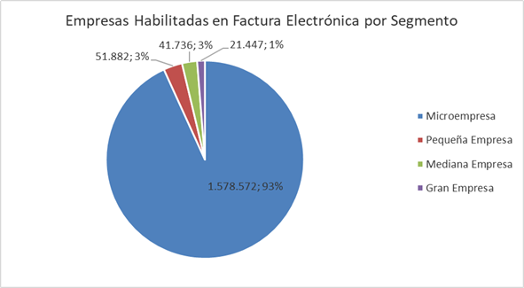 En el siguiente gráfico se muestra la distribución de los contribuyentes habilitados en factura electrónica por segmento al que pertenecen.